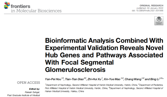 而另一篇發表在《Frontiers in Molecular Biosciences》期刊上的論文,柏恒科技PCR儀也發揮了不小作用。哈爾濱醫科大學附屬二院腎內科主任醫師、博士生及碩士生導師李冰課題組發表的題為的Bioinformatic Analysis Combined With Experimental Validation Reveals Novel Hub Genes and Pathways Associated With Focal Segmental Glomerulosclerosis的文章,作者研究團隊利用生物信息學分析與實驗驗證相結合,揭示了與局灶性節段性腎小球硬化相關的新型Hub基因和通路。